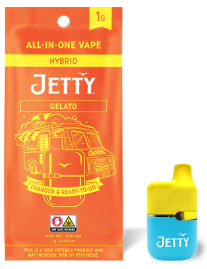 Gelato is a pretty intense high and a solid choice for relaxing while still keeping focus. Great up-front fruit flavor with hints of earthy Kush on the exhale. Jetty High THC is super-potent and features a variety of legendary cannabis strains. Jetty High THC is triple-tested and ECCO Certified for purity. Made in our Oakland lab using real cannabis terpenes, Jetty High THC is sure to elevate the everyday. Pure, potent, and portable, Jetty’s All-in-One Vape delivers everything you want in a vape. CCell's industry-leading Mini Tank hardware features EVOMax ceramic heating. Charged and ready to enjoy, it is designed to go wherever you do.