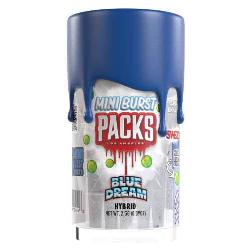 "Blue Dream is a sativa-dominant hybrid marijuana strain. This strain produces a balanced high, along with effects such as cerebral stimulation and full-body relaxation. Blue Dream is a potent strain with smell and taste like sweet berries. Bursting with flavor, a 5-pack of mini joints, each with a naturally derived fruit terpene ball.