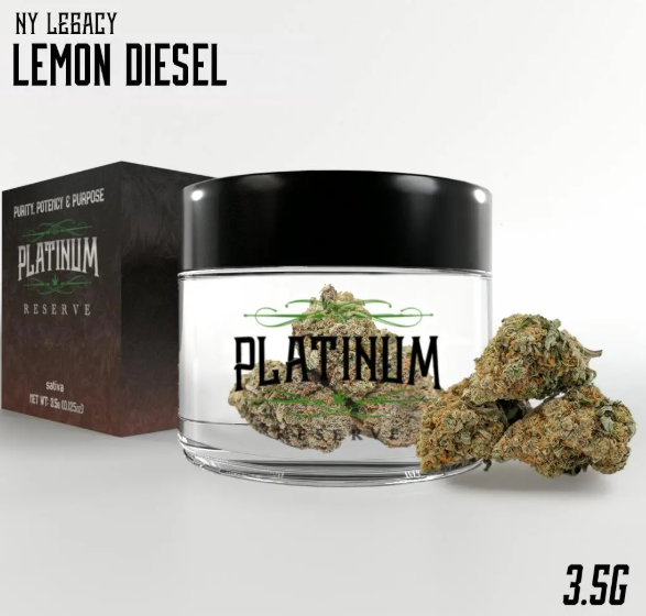 is a zesty sativa-leaning hybrid that delivers a sharp citrus-and-fuel experience with fast, focused effects as crisp and motivating as lemon peel over classic diesel. This cultivar hits quickly with a clear-headed cerebral rush that supports energy, attention, and creative momentum while keeping the body light and functional. Lemon Diesel brings a bright flavor of sour lemon, tangy citrus, and piney spice backed by a strong diesel finish and a faint herbal earthiness. The aroma is pungent and invigorating, combining lemon-lime zest, fuel-heavy funk, and skunky green notes that intensify when the resinous buds are broken apart. Patients often appreciate Lemon Diesel for helping manage fatigue, stress, and low mood while staying productive—an excellent daytime option.