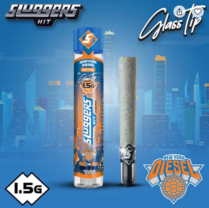 Enjoy a premium experience with the Sluggers 1.5g Joint, filled with whole ground flower and infused with live diamonds and hash. Featuring a collectible glass tip for a smooth draw, this joint combines quality and potency in every puff.